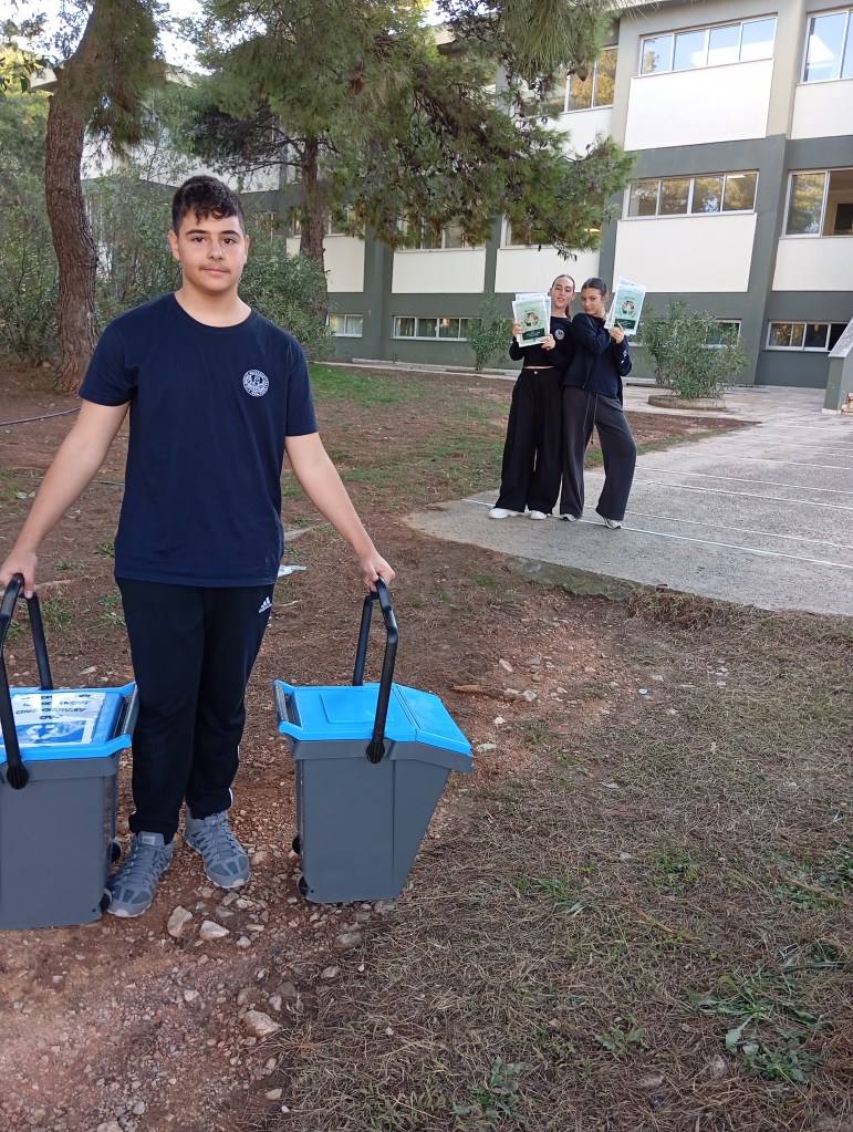 Η προστασία του περιβάλλοντος και η καλλιέργεια οικολογικής συνείδησης αποτελούν βασικούς πυλώνες της εκπαιδευτικής μας φιλοσοφίας. Στο πλαίσιο αυτό, η μαθητική ομάδα Ecolab ανέλαβε μια ουσιαστική δράση για την ενίσχυση της ανακύκλωσης στον σχολικό χώρο, σε συνεργασία με τον Δήμο. Οι μαθητές τοποθέτησαν ευδιάκριτη σήμανση στους κάδους που βρίσκονται εντός του σχολείου, ώστε να διαχωρίζονται ξεκάθαρα οι κάδοι για χαρτί και πλαστικό. Η πρωτοβουλία αυτή διευκολύνει τη σωστή χρήση των κάδων από όλους τους μαθητές και εκπαιδευτικούς, ενισχύοντας την καθημερινή εφαρμογή της ανακύκλωσης.