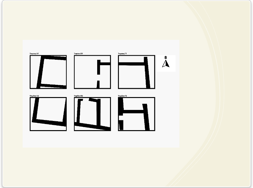 - Πρώτη άσκηση: «Ανάγνωση» της κάτοψης της δειγματικής ανασκαφής, με στόχο την εξοικείωση με τα σύμβολα και τη λογική ενός αρχαιολογικού σχεδίου.