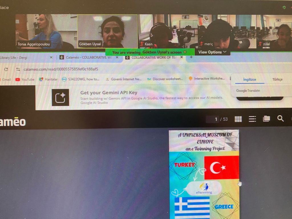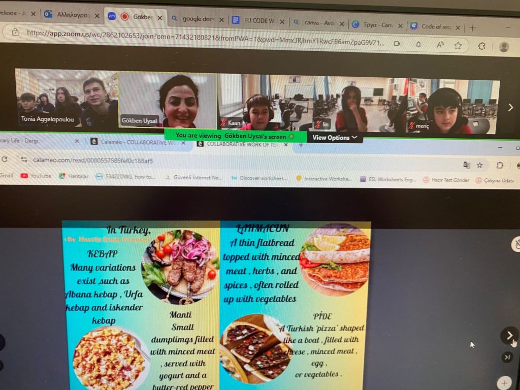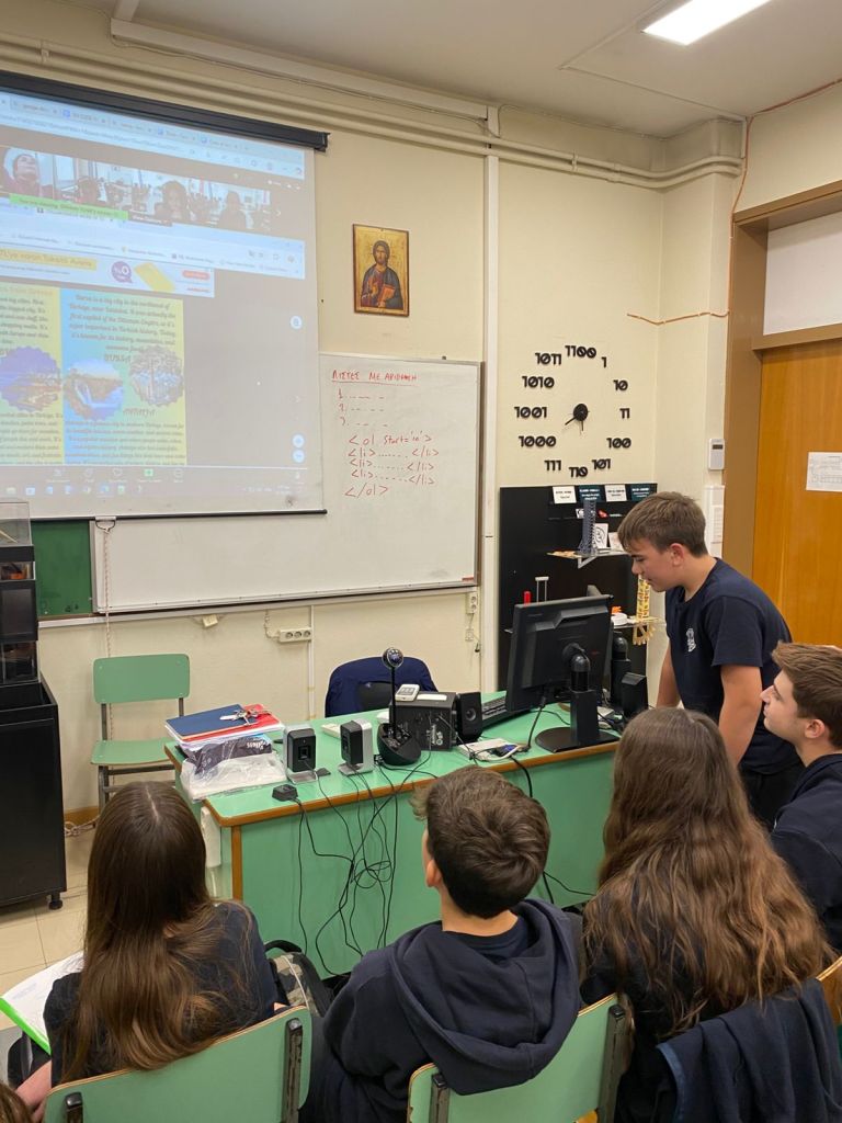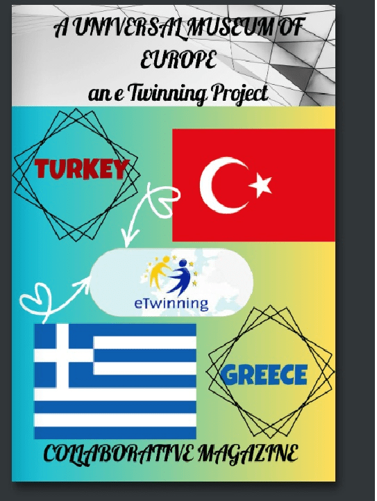 Στο πλαίσιο του ευρωπαϊκού project e-Twinning με τίτλο “A Universal Museum of Europe”, στο οποίο συμμετέχουν οι μαθητές της Γ΄Γυμνασίου του τμήματος της κ. Τ.Αγγελοπούλου, οι μαθητές πραγματοποίησαν δύο διαδικτυακές συναντήσεις με τους μαθητές της Τουρκίας με τους οποίους συνεργάζονται. Οι μαθητές κάθε σχολείου ανέλαβαν να ερευνήσουν και να καταγράψουν σημαντικά στοιχεία των δύο χωρών αντίστοιχα, καθώς και να συγκεντρώσουν τις πληροφορίες τους σε γραπτή μορφή στα αγγλικά. Οι πληροφορίες αφορούσαν στις πόλεις των χωρών, στο κλίμα, στις παραδόσεις, στην τοπική κουζίνα, στο εκπαιδευτικό σύστημα κ.ά. Αποτέλεσμα αυτής της συνεργασίας ήταν η δημιουργία ενός κοινού ψηφιακού περιοδικού 53 σελίδων (e-magazine) με τη βοήθεια του ψηφιακού εργαλείου calameo, το οποίο δημοσιεύθηκε στην πλατφόρμα e-Twinning. Τα παιδιά είχαν την ευκαιρία όχι μόνο να μάθουν χρήσιμες πληροφορίες ο ένας για τη χώρα του άλλου, αλλά και να επικοινωνήσουν στα αγγλικά προκειμένου να συνεργαστούν και να υλοποιήσουν την κοινή αυτή δράση.
