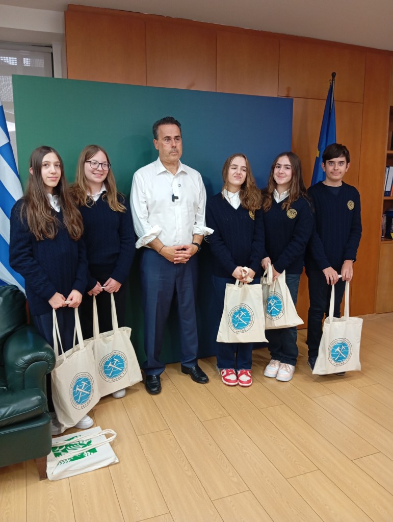 Λίγες ημέρες πριν από τη Διάσκεψη του ΟΗΕ για το Κλίμα (COP30) στο Belém της Βραζιλίας, πέντε μαθητές του Σχολείου μας, η Αναστασία Μάτσια, η Κωνσταντίνα Μουντζούρη, η Μαριάνθη Ξύστρα, ο Ιωάννης Παπαδόπουλος και η Ευτυχία Χρυσάνθη, και η καθηγήτρια Τεχνολογίας κ. Μαρία Σόφη εκπροσώπησαν το Α’ Αρσάκειο-Τοσίτσειο Γυμνάσιο Εκάλης σε μια ξεχωριστή επίσκεψη στο Υπουργείο Περιβάλλοντος και Ενέργειας. Σκοπός της συνάντησης με τον Υπουργό κ. Σταύρο Παπασταύρου ήταν η παράδοση καρτών και επιστολών που επιμελήθηκαν μαζί με ομάδα συνολικά 17 μαθητών και μαθητριών του Σχολείου μας, στο πλαίσιο της πανελλήνιας δράσης για την κλιματική κρίση. Μέσα από τις δημιουργίες τους, αποτύπωσαν με ευαισθησία και φαντασία τις ανησυχίες και τις προτάσεις τους για ένα βιώσιμο μέλλον.