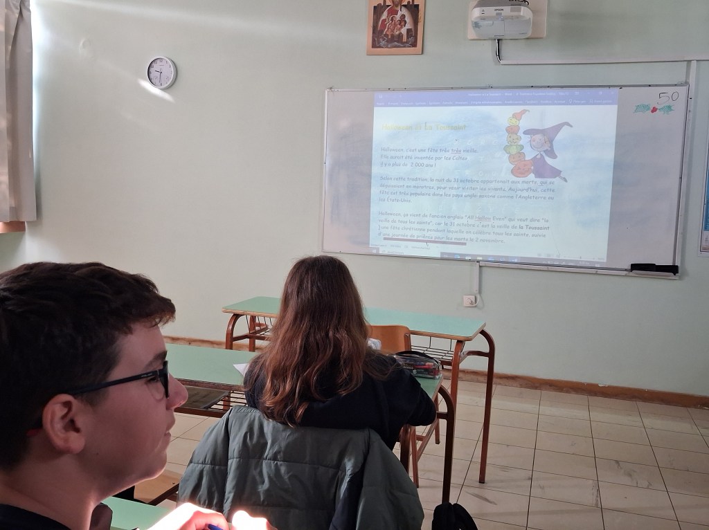 Τα τμήματα Γαλλικών της Β΄και Γ΄τάξης με την καθηγήτριά τους κ. Νικολαϊδου Μαργαρίτα-Ματθίλδη γνώρισαν την ιστορία της παράδοσης του Halloween και τη σχέση της (ομοιότητες και διαφορές) με την αντίστοιχη χριστιανική γιορτή, μέσα από σταυρόλεξα και σύντομα βίντεο συνοδευόμενα από ερωτηματολόγιο.