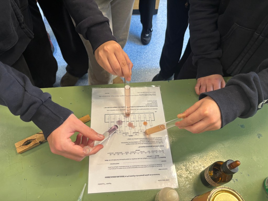 Oι μαθητές του Γ3 της Γ’ Γυμνασίου του Α΄ Αρσακείου-Τοσιτσείου Γυμνασίου Εκάλης, τη Δευτέρα 3/11/2025, στο μάθημα της Χημείας, κατασκεύασαν τη χρωματική κλίμακα του pH με δείκτη βάμμα ηλιοτροπίου, με τεχνικές μικροκλίμακας (ΕΚΦΕ Νέας Ιωνίας). Αυτή η μέθοδος τους επιτρέπει να πραγματοποιούν πειράματα με ασφάλεια, ακρίβεια και οικολογική συνείδηση, διατηρώντας παράλληλα τη χαρά της πειραματικής διαδικασίας. Πιο συγκεκριμένα, η δραστηριότητα των μαθητών μας, που κατασκεύασαν τη χρωματική κλίμακα του pH με δείκτη βάμμα ηλιοτροπίου χρησιμοποιώντας τεχνικές μικροκλίμακας, συνδέεται άμεσα με τις αρχές της πράσινης Χημείας και της αειφορίας στο σχολείο. Μέσα από τη χρήση ελάχιστων ποσοτήτων αντιδραστηρίων και απλού, επαναχρησιμοποιούμενου εξοπλισμού, οι μαθητές εφαρμόζουν στην πράξη τις αρχές της μείωσης αποβλήτων, της εξοικονόμησης πόρων και της προστασίας του περιβάλλοντος. Παράλληλα, η μικροκλίμακα ενισχύει την ασφάλεια στο εργαστήριο και καλλιεργεί οικολογική συνείδηση, δείχνοντας πως η επιστημονική έρευνα μπορεί να συνδυάζεται με υπεύθυνη στάση απέναντι στη φύση. Έτσι, το σχολείο λειτουργεί ως ζωντανό εργαστήριο αειφορίας, προάγοντας τη μάθηση μέσα από βιώσιμες πρακτικές. Η Χημεία της μικροκλίμακας και η κλασική Χημεία έχουν τον ίδιο επιστημονικό στόχο — τη μελέτη χημικών αντιδράσεων — αλλά διαφέρουν σημαντικά στον τρόπο εκτέλεσης και στις συνθήκες των πειραμάτων.