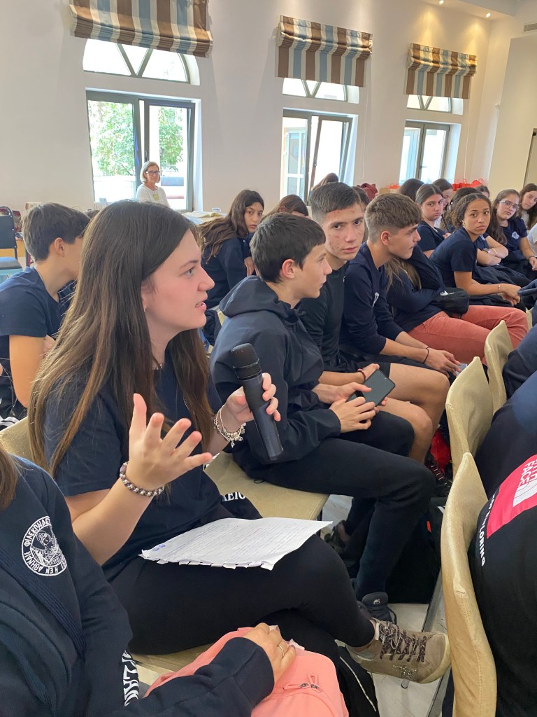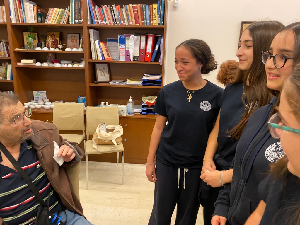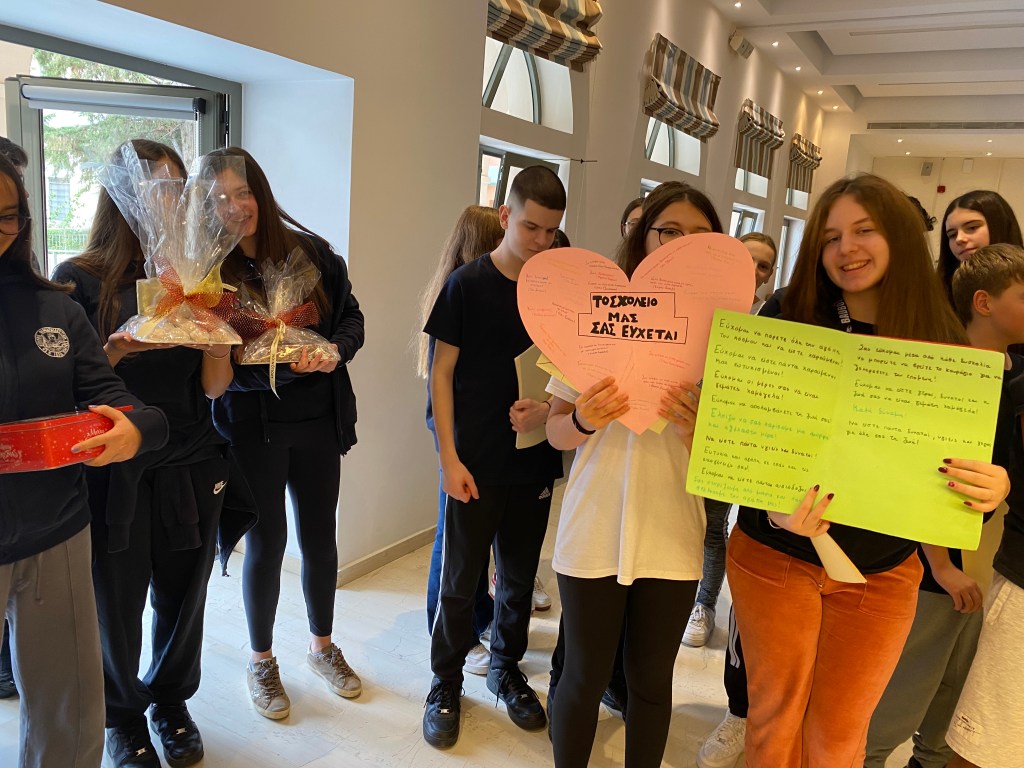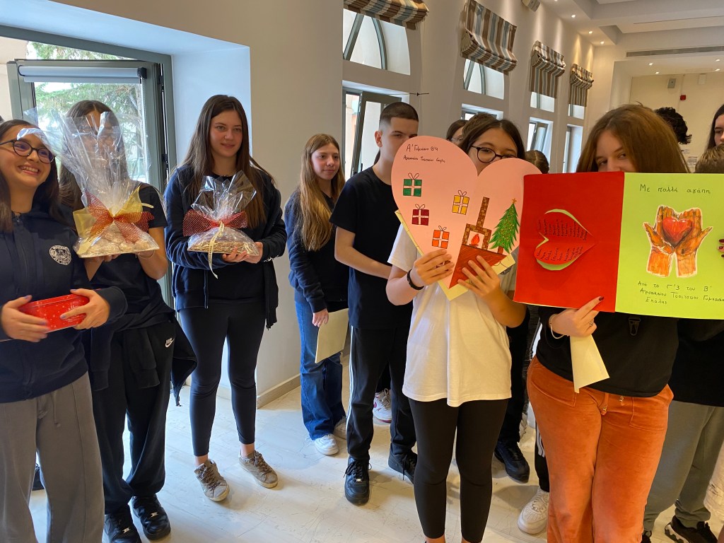 Στη «ΓΑΛΙΛΑΙΑ» τους υποδέχθηκαν υπεύθυνοι της Μονάδας, οι οποίοι πραγματοποίησαν εκτενή παρουσίαση σχετικά με το έργο και τη λειτουργία της. Οι μαθητές ενημερώθηκαν για τον τρόπο φιλοξενίας των ασθενών, τα κριτήρια εισαγωγής, τη διάρκεια της νοσηλείας, καθώς και για τις δραστηριότητες του Κέντρου Ημέρας. Ιδιαίτερη αναφορά έγινε στον σημαντικό ρόλο των εθελοντών, οι οποίοι προσφέρουν χρόνο, γνώσεις και αγάπη, συμβάλλοντας ουσιαστικά στο πολύτιμο έργο της Μονάδας. Ακολούθησε μικρό διάλειμμα με κέρασμα για τους μαθητές, προσφορά του προσωπικού της Μονάδας. Στη συνέχεια, με τη μουσική καθοδήγηση της κ. Φανής Αβρανά, οι μαθητές τραγούδησαν στους ασθενείς τραγούδια που είχαν προετοιμάσει στο μάθημα της Μουσικής, προσφέροντας στιγμές χαράς, συγκίνησης και ελπίδας. Οι ασθενείς ανταπέδωσαν με ένα δικό τους τραγούδι, δημιουργώντας μια ζεστή ατμόσφαιρα αμοιβαίας προσφοράς. Οι μαθητές πρόσφεραν επίσης γλυκίσματα και χειροποίητες κάρτες που είχαν δημιουργήσει με αγάπη στο μάθημα Θρησκευτικών. Στο τέλος της επίσκεψης παρακολούθησαν ενημερωτικό βίντεο για τη δράση της «ΓΑΛΙΛΑΙΑΣ» και αντάλλαξαν θερμές ευχές με το προσωπικό, ανανεώνοντας το ραντεβού για μελλοντικές δράσεις. Η επίσκεψη υπήρξε μια κορυφαία παιδαγωγική εμπειρία, μέσα από την οποία οι μαθητές γνώρισαν την αξία της προσφοράς, της αξιοπρέπειας και του σεβασμού προς κάθε άνθρωπο, ανεξαρτήτως καταγωγής, οικονομικής κατάστασης ή κοινωνικής θέσης. Διαπίστωσαν έμπρακτα πως η αληθινή προσφορά προέρχεται από την καρδιά και έχει βαθιά επίδραση τόσο σε εκείνον που τη δέχεται όσο και σε εκείνον που τη προσφέρει. Τους μαθητές συνόδευσαν οι καθηγήτριες: κ. Μαρία Χαλκιά (Θρησκευτικών – υπεύθυνη της επίσκεψης), κ. Φανή Αβρανά (Μουσικής) και κ. Κυριακή Πρεβενιού (Καλλιτεχνικών).