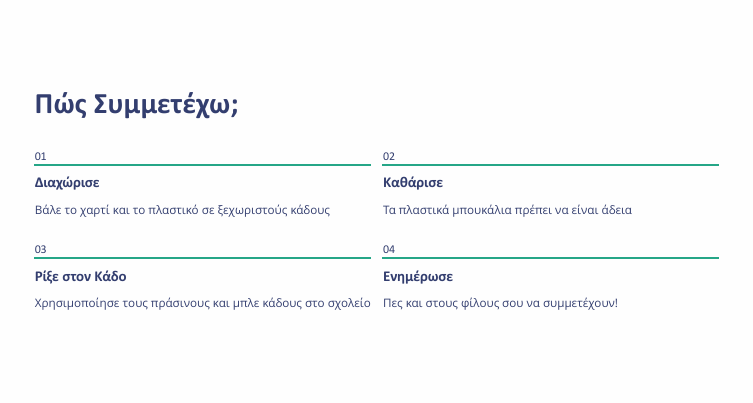Στο σχολείο μας υπάρχουν ειδικοί κάδοι για χαρτί και πλαστικό, και η ομάδα Eco Lab φρόντισε να δείξει τι ακριβώς μπορούμε να ανακυκλώνουμε και πώς: