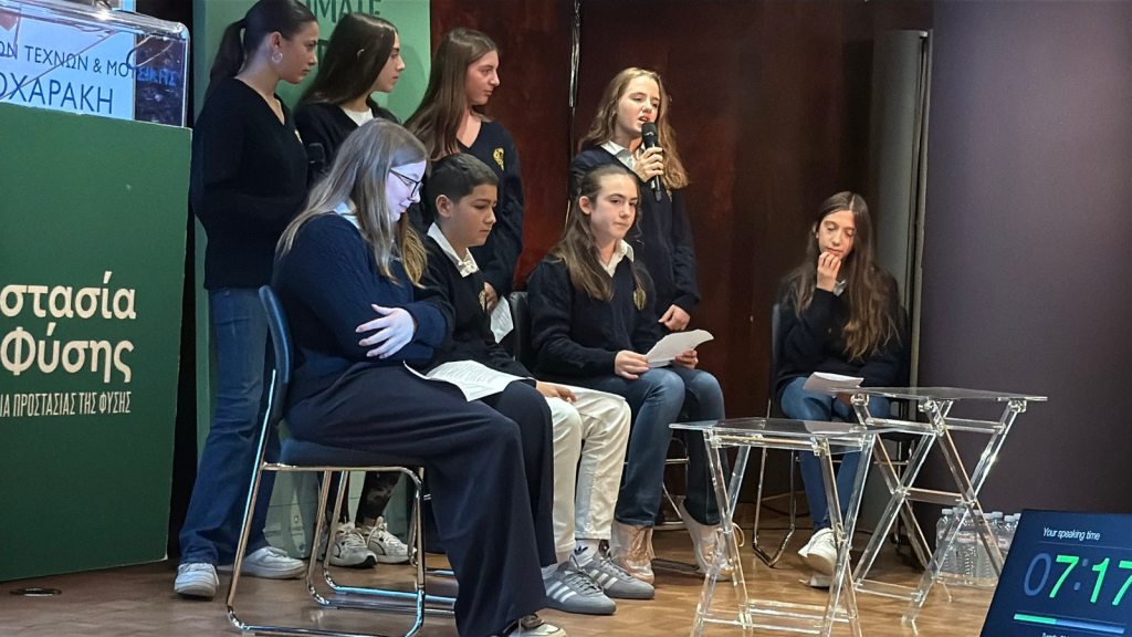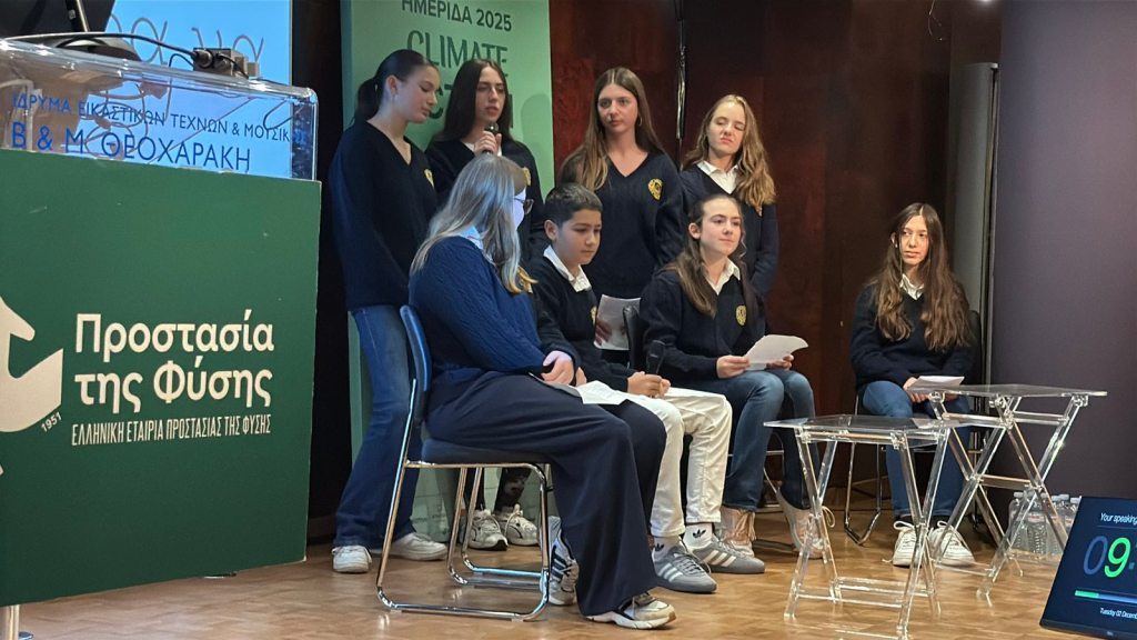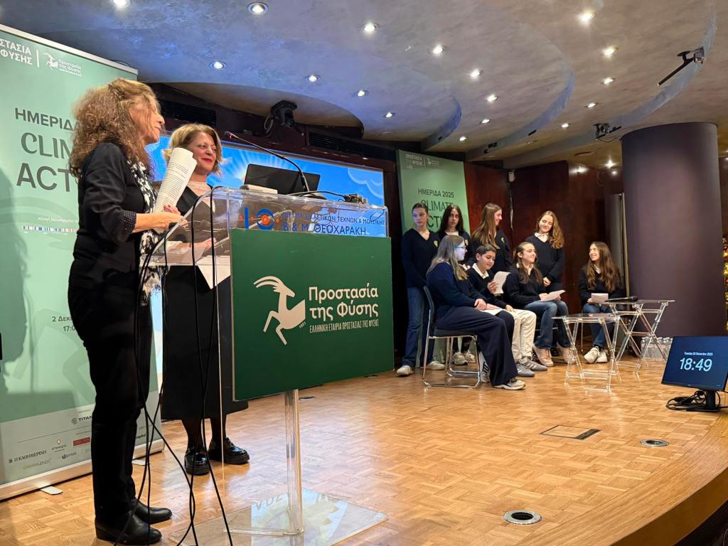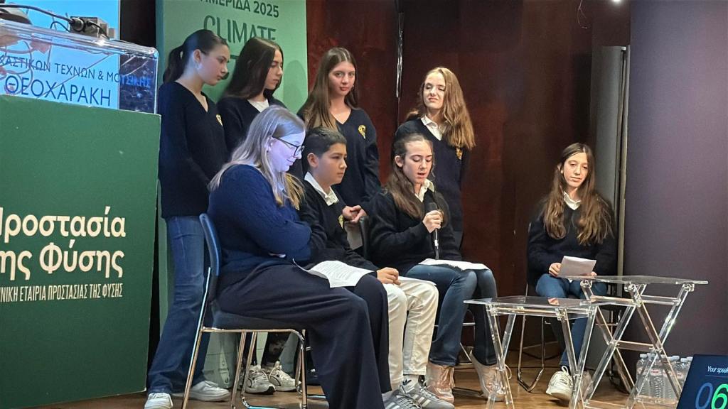 Στις 2 Δεκεμβρίου, στο Ίδρυμα Θεοχαράκη, πραγματοποιήθηκε Ημερίδα της Ελληνικής Εταιρίας Προστασίας της Φύσης με τη συμμετοχή φορέων του Υπουργείου Παιδείας, του ΕΚΠΑ, του Πανεπιστημίου Θεσσαλίας, επιστημονικών φορέων και εκπροσώπων της Κοινωνίας των Πολιτών. Μέσα σε αυτό το πλαίσιο, οι μαθητές μας μαζί με την εκπαιδευτικό τους κ. Σόφη Μαρία πήραν μέρος σε ένα πάνελ διάρκειας 15 λεπτών. Η εκπαιδευτικός έθεσε στα παιδιά ερωτήσεις και εκείνα μίλησαν με ειλικρίνεια και θάρρος, μεταφέροντας τις σκέψεις και τα συναισθήματά τους για την εμπειρία τους με την COP30 (30ή Διάσκεψη του ΟΗΕ για την Κλιματική Αλλαγή, που πραγματοποιήθηκε τον Νοέμβριο του 2025 στο Μπελέμ της Βραζιλίας) και τη συνάντηση με τον Υπουργό Περιβάλλοντος και Ενέργειας κ. Σταύρο Παπασταύρου. Οι μαθητές μίλησαν με θάρρος για τις προκλήσεις και τις χαρές που βίωσαν, για τη συγκίνηση της προσωπικής επαφής με τον Υπουργό και για την ανάγκη να ακουστούν οι φωνές τους και να υπάρξει ουσιαστική συνέχεια. Οι τοποθετήσεις τους ανέδειξαν την αγωνία αλλά και την ελπίδα της νέας γενιάς, προσδίδοντας στην Ημερίδα μια ξεχωριστή διάσταση: υπενθύμισαν σε όλους ότι η φωνή των παιδιών δεν είναι απλώς μια μαρτυρία, αλλά μια απαίτηση για δράση και αλλαγή.