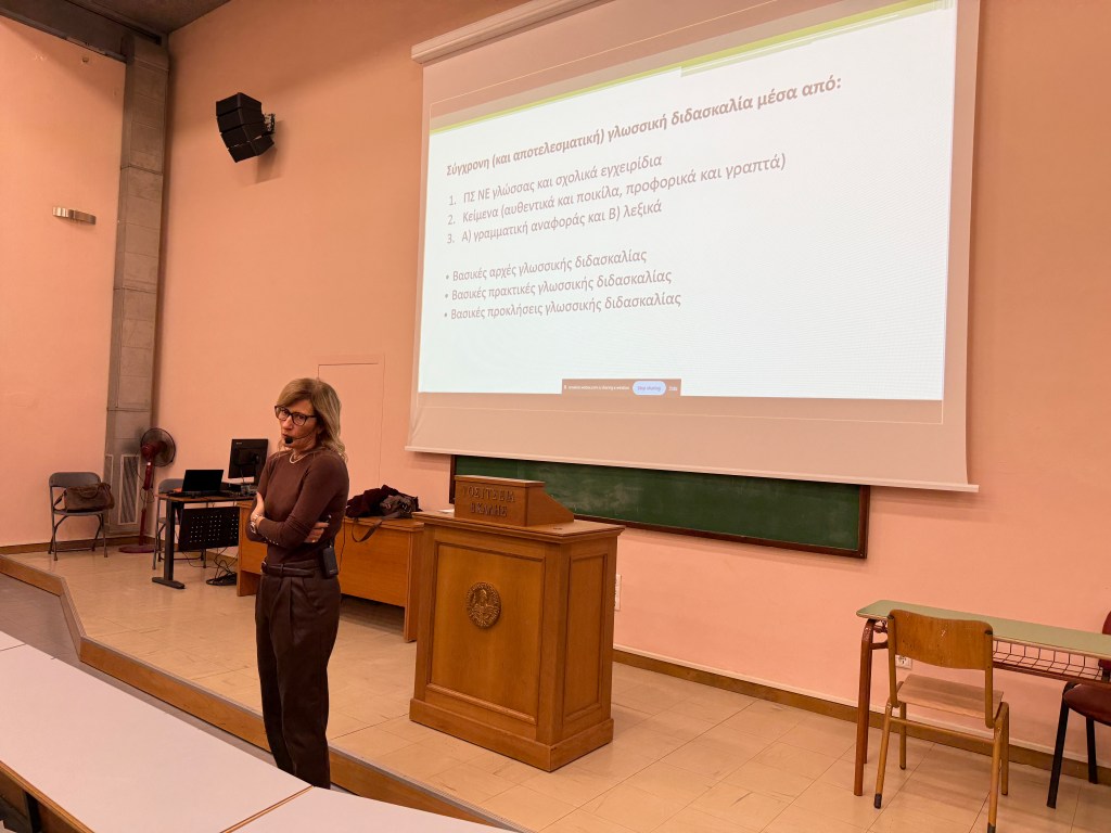 Κεντρικός άξονας του σεμιναρίου ήταν η διδακτική αξιοποίηση της «Σύγχρονης Σχολικής Γραμματικής για όλους» του Καθηγητή Γεωργίου Μπαμπινιώτη, ως ενός δυναμικού εργαλείου ερμηνείας της γλώσσας μέσα στο κείμενο. Συγκεκριμένα, δόθηκε ιδιαίτερη έμφαση στη λειτουργική προσέγγιση των μερών του λόγου και στο πώς αυτά συνδιαμορφώνουν το ύφος, το νόημα και την επιχειρηματολογία — σε πλήρη συμφωνία με τις αρχές των νέων Προγραμμάτων Σπουδών που προτάσσουν τη γλωσσική επίγνωση και την κριτική ανάγνωση αυθεντικών κειμένων. Παράλληλα, παρουσιάστηκαν σύγχρονοι τρόποι αξιοποίησης της τεχνητής νοημοσύνης ως υποστηρικτικού εργαλείου του φιλολόγου, με στόχο τον εμπλουτισμό της διδασκαλίας και τη διευκόλυνση της προετοιμασίας του μαθήματος. Η συζήτηση στηρίχτηκε σε συγκεκριμένο άρθρο του Νίκου Βατόπουλου, που χρησιμοποιήθηκε ως παράδειγμα γλωσσικής και υφολογικής ανάλυσης, αναδεικνύοντας πώς η τεχνητή νοημοσύνη μπορεί να συνδράμει στην ανίχνευση γλωσσικών επιλογών, χωρίς βέβαια να υποκαθιστά τον παιδαγωγικό ρόλο και την κριτική σκέψη του εκπαιδευτικού. Το σεμινάριο κατέδειξε ότι η τεχνολογία, όταν εντάσσεται με παιδαγωγικούς όρους, μπορεί να γίνει σύμμαχος του φιλολόγου — ενισχύοντας τη διερευνητική μάθηση και την ενεργή συμμετοχή των μαθητών. Ταυτόχρονα, η Σύγχρονη Σχολική Γραμματική Μπαμπινιώτη παραμένει το θεωρητικό υπόβαθρο που διασφαλίζει την επιστημονική εγκυρότητα της γλωσσικής προσέγγισης.
