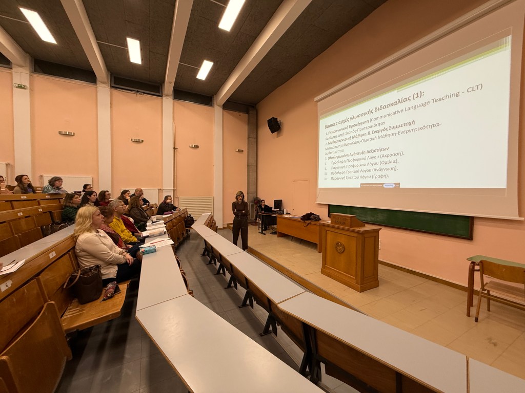 Στο πλαίσιο της συνεχούς επιμόρφωσης των εκπαιδευτικών και της προετοιμασίας για την εφαρμογή των Νέων Προγραμμάτων Σπουδών από την επόμενη σχολική χρονιά, πραγματοποιήθηκε την Τρίτη 16 Δεκεμβρίου 2025 ένα επιμορφωτικό σεμινάριο για τους φιλολόγους των Αρσακείων -Τοσιτσείων Σχολείων στο αμφιθέατρο του σχολείου, με εισηγήτρια την Επόπτρια των Αρσακείων Σχολείων δρα Νέλλη Παππά, γλωσσολόγο.