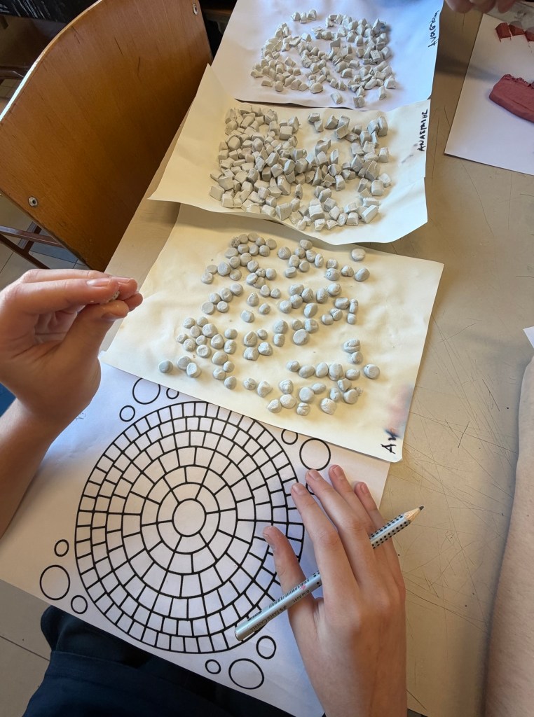 Οι μαθητές του τμήματος της Ζώνης Πολιτισμού Β΄ Γυμνασίου, με τίτλο «Καλλιτεχνικό Εργαστήρι: Το σχολείο αλλιώς!», συμμετείχαν σε ένα δημιουργικό και βιωματικό εργαστήριο ψηφιδωτού, ανακαλύπτοντας στην πράξη την αξία μιας τέχνης που διατηρείται ζωντανή στο πέρασμα των αιώνων. Κατά τη διάρκεια του εργαστηρίου, οι μαθητές κατασκεύασαν μόνοι τους ψηφίδες από πηλό, τις οποίες στη συνέχεια έβαψαν και αξιοποίησαν για να δημιουργήσουν το δικό τους ψηφιδωτό έργο τέχνης. Μέσα από αυτή τη διαδικασία, βίωσαν όλα τα στάδια της καλλιτεχνικής δημιουργίας: από τον σχεδιασμό και την προετοιμασία των υλικών έως τη σύνθεση και την ολοκλήρωση του τελικού έργου. Το ψηφιδωτό, ως μορφή τέχνης με ρίζες στην ιστορία και ιδιαίτερη παρουσία στον ελληνικό πολιτισμό, αποτέλεσε αφορμή για να γνωρίσουν οι μαθητές την αισθητική και διαχρονική του αξία. Μέσα από τη βιωματική μάθηση κατανόησαν πώς μια καλλιτεχνική έκφραση και μια απαιτητική τεχνική μπορούν να συνδυαστούν, ώστε να παραχθεί ένα ολοκληρωμένο έργο τέχνης με αντοχή στον χρόνο. Πέρα από την καλλιτεχνική διάσταση, το εργαστήριο ανέδειξε σημαντικά παιδαγωγικά οφέλη. Οι μαθητές ανέπτυξαν τη δημιουργικότητα και τη φαντασία τους, καλλιέργησαν τη λεπτή κινητικότητα και την αισθητική τους αντίληψη, ενώ παράλληλα ενίσχυσαν τη συνεργασία και το ομαδικό πνεύμα. Η διαδικασία της σύνθεσης του ψηφιδωτού απαιτούσε υπομονή, επιμονή, συγκέντρωση και υπευθυνότητα, δεξιότητες που αποτελούν βασικά στοιχεία της μαθησιακής και προσωπικής τους ανάπτυξης. Το «Καλλιτεχνικό Εργαστήρι: Το σχολείο αλλιώς!» επιβεβαίωσε ότι η τέχνη μπορεί να λειτουργήσει ως ένα ισχυρό παιδαγωγικό εργαλείο: να εμπνέει, να ενεργοποιεί και να δίνει στους μαθητές τη δυνατότητα να εκφραστούν δημιουργικά, μετατρέποντας το σχολείο σε έναν ζωντανό χώρο μάθησης, εμπειρίας και πολιτισμού.