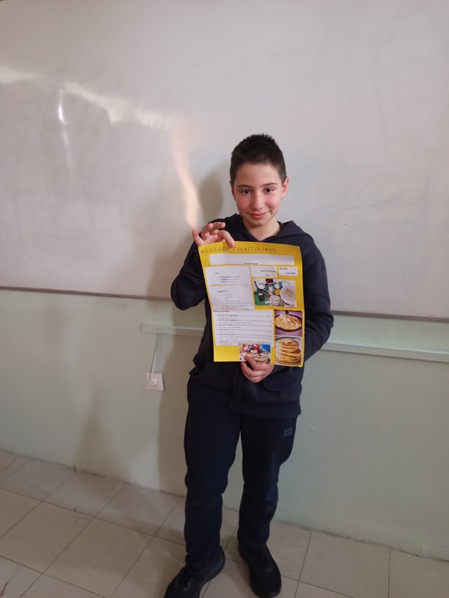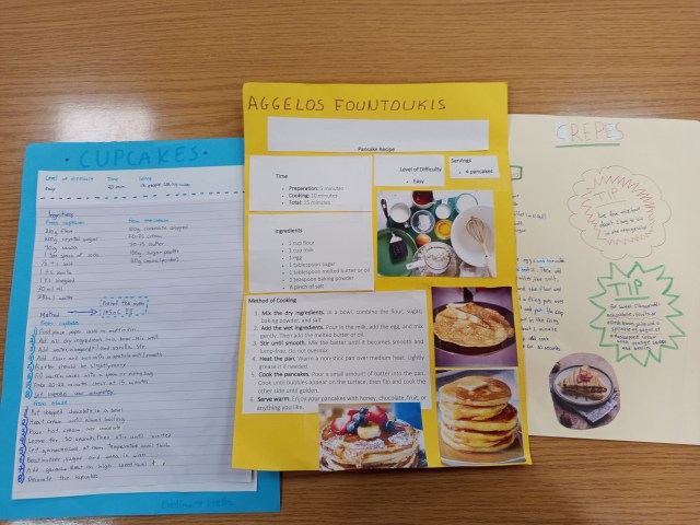 Στο πλαίσιο του μαθήματος των Αγγλικών, οι μαθητές της Α’ τάξης του τμήματος της κ. Μ. Γιαννάκη πραγματοποίησαν βιωματική γνωστική εργασία σχετικά με απλές συνταγές παρασκευής φαγητού ή γλυκού. Στην αρχή, έμαθαν να κατανοούν τα βήματα στην παρασκευή του εδέσματος και στη συνέχεια εξοικειώθηκαν με το σχετικό λεξιλόγιο και τη  γραμματική-συντακτική δομή μιας συνταγής. Επόμενο βήμα ήταν να εκπονήσουν τις δικές τους απλές συνταγές για κάτι που τους αρέσει και τη Δευτέρα 16 Φεβρουαρίου 2026, αφού παρουσίασαν τις εργασίες τους στους συμμαθητές τους, το μάθημα έκλεισε με κέρασμα σε όλους των γευστικών δημιουργιών των παιδιών μας!