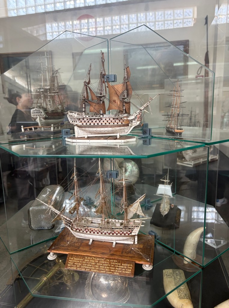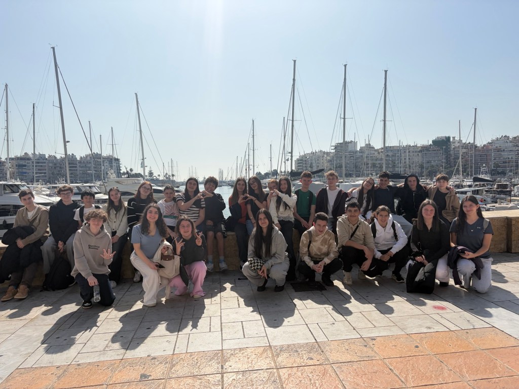 Στη συνέχεια οι μαθητές μας και οι μαθητές από τη Γαλλία, είχαν την ξεχωριστή ευκαιρία να επισκεφθούν το Ναυτικό Μουσείο Πειραιά και να ταξιδέψουν στον χρόνο, ακολουθώντας το συναρπαστικό νήμα της ελληνικής ναυτικής ιστορίας από την αρχαιότητα έως τη σύγχρονη εποχή. Η ξενάγηση ξεκίνησε με το εντυπωσιακό άγαλμα του Ποσειδώνα, όπου τα παιδιά γνώρισαν τη σημασία του θεού της θάλασσας για την πόλη της Αθήνας και τη στενή σχέση των Ελλήνων με το υγρό στοιχείο. Στη συνέχεια, η ξεναγός μάς μετέφερε στην εποχή των Περσικών Πολέμων, εξηγώντας με ζωντάνια τη σπουδαιότητα της Ναυμαχία της Σαλαμίνας για την εξέλιξη της ελληνικής και παγκόσμιας ιστορίας. Ιδιαίτερο ενδιαφέρον προκάλεσε το αντίγραφο της Αθηναϊκής Τριήρης, του ναυτικού «υπερόπλου» της αρχαίας Αθήνας, που εντυπωσίασε τους μαθητές με την τεχνολογία και την αποτελεσματικότητά της. Το ταξίδι συνεχίστηκε με αναφορές στα πλοία της μινωικής και κυκλαδικής εποχής, στη βυζαντινή περίοδο και στο περίφημο υγρό πυρ, καθώς και στα χρόνια της Οθωμανικής κυριαρχίας. Ιδιαίτερη μνεία έγινε στη Συνθήκη του Κιουτσούκ-Καϊναρτζή, που έδωσε σημαντικές δυνατότητες στους Έλληνες ναυτικούς και συνέβαλε στην οικονομική και πνευματική τους άνθηση, προετοιμάζοντας το έδαφος για την Ελληνική Επανάσταση.