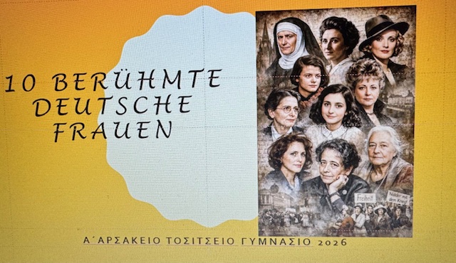 Με αφορμή την Παγκόσμια Ημέρα της Γυναίκας (8 Μαρτίου), το Γερμανικό τμήμα του Α’ Αρσακείου-Τοσιτσείου Γυμνασίου Εκάλης διοργάνωσε μια ξεχωριστή δράση για τους μαθητές και τις μαθήτριες της Γ’ Γυμνασίου. Αυτή η δράση ήταν αφιερωμένη σε σημαντικές Γερμανίδες που άφησαν το στίγμα τους στην ιστορία, την επιστήμη, την πολιτική και τα ανθρώπινα δικαιώματα. Στο πλαίσιο της δράσης, οι μαθητές είχαν την ευκαιρία να γνωρίσουν τη ζωή και το έργο δέκα σπουδαίων γυναικών από τη Γερμανία, από τον 19ο αιώνα έως σήμερα. Γυναίκες που με το θάρρος, την επιμονή και το όραμά τους άλλαξαν τον κόσμο και συνεχίζουν να εμπνέουν μέχρι σήμερα. Στόχοι της δράσης ήταν, αφενός μεν, να αναδειχθεί η σημασία του ρόλου και η δύναμη των γυναικών στην ιστορία και στη σύγχρονη κοινωνία, αφετέρου δε, να ευαισθητοποιήσει τους μαθητές και τις μαθήτριες στο θέμα της ισότητας των φύλων, των ανθρωπίνων δικαιωμάτων, της ενίσχυσης της συνεργασίας και της αποδοχής της διαφορετικότητας. Παρουσιάστηκαν διάφορα πρότυπα γυναικών που ηγήθηκαν, καινοτόμησαν και αγωνίστηκαν, εμπνέοντας τους νεότερους να ακολουθήσουν τα βήματά τους. Από την πλευρά τους οι μαθητές μας είχαν την ευκαιρία να προβληματιστούν, να εκφράσουν τις δικές τους απόψεις και να κατανοήσουν μέσα από την δράση αυτή τη σημασία της ισότητας και της ενεργού συμμετοχής όλων στη διαμόρφωση ενός καλύτερου κόσμου. Η Παγκόσμια Ημέρα της Γυναίκας δεν είναι μόνο μια μέρα για τιμή και αναγνώριση, αλλά και μια ευκαιρία για έμπνευση και στοχασμό. Την επιμέλεια της δράσης είχαν οι καθηγήτριες της Γερμανικής Γλώσσας κ. Φ. Ματθαίου, κ. Κ. Σαρλή και κ. Τ. Σιδηροπούλου.