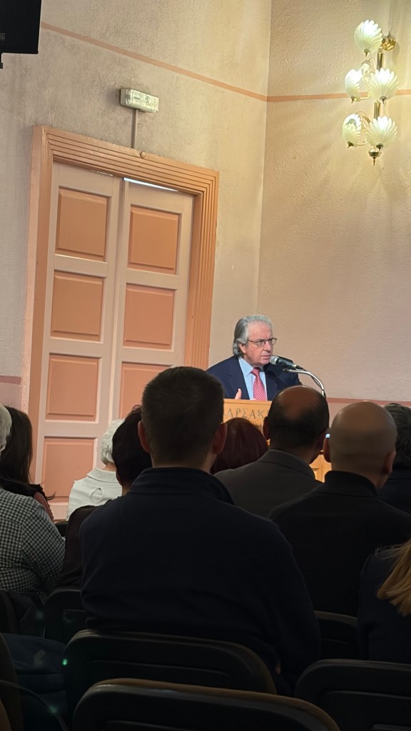 Την εκδήλωση τίμησε με την παρουσία του ο Πρόεδρος της Φιλεκπαιδευτικής Εταιρείας, καθηγητής κ. Γεώργιος Μπαμπινιώτης, ο οποίος και την έκλεισε με έναν ουσιαστικό λόγο. Εξέφρασε την ικανοποίησή του για το υψηλό επίπεδο των έργων και της συζήτησης, τονίζοντας ότι η τέχνη δεν σχετίζεται με την τελειότητα, αλλά με τη διαρκή αναζήτηση και δημιουργία. Υπογράμμισε ότι οι βασικοί πυλώνες της παιδείας είναι η ελευθερία και η δημιουργικότητα, αξίες που αναδείχθηκαν έμπρακτα μέσα από τους Αγώνες, αξίες που καλλιεργούν τα Αρσάκεια Σχολεία. Κλείνοντας, αναφέρθηκε στη διαχρονική αξία της ελληνικής γλώσσας και της τέχνης, εκφράζοντας την ελπίδα για τη συνέχιση του θεσμού των Αγώνων Λόγου και Τέχνης και την περαιτέρω ενίσχυση της καλλιτεχνικής έκφρασης των μαθητών. Οι Αγώνες Λόγου και Τέχνης επιβεβαίωσαν, για ακόμη μία χρονιά, ότι η ουσία των βραβείων βρίσκεται στην ενθάρρυνση, την εξέλιξη και την καλλιέργεια της δημιουργικής φωνής των νέων.