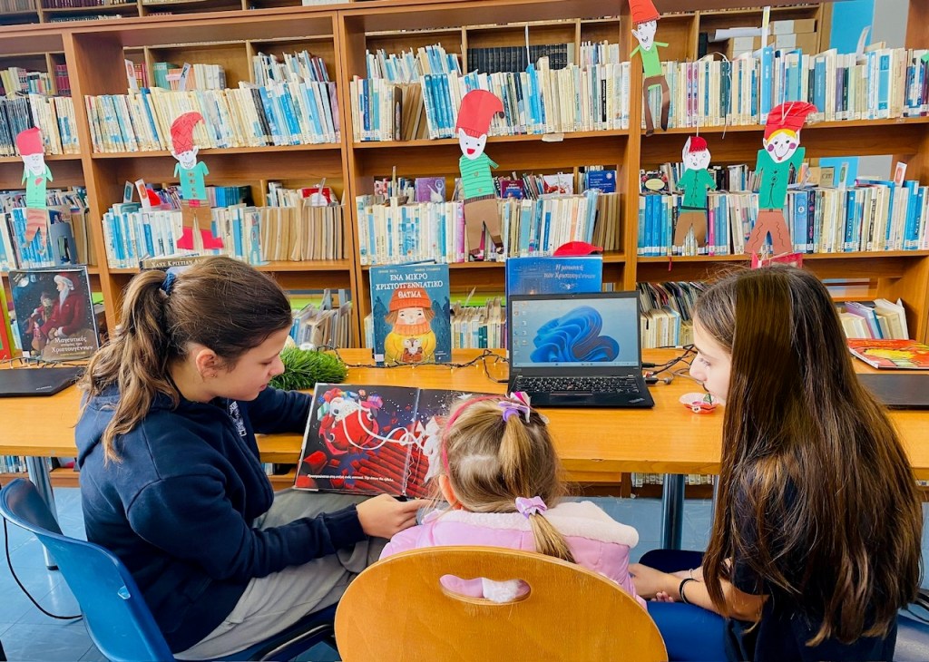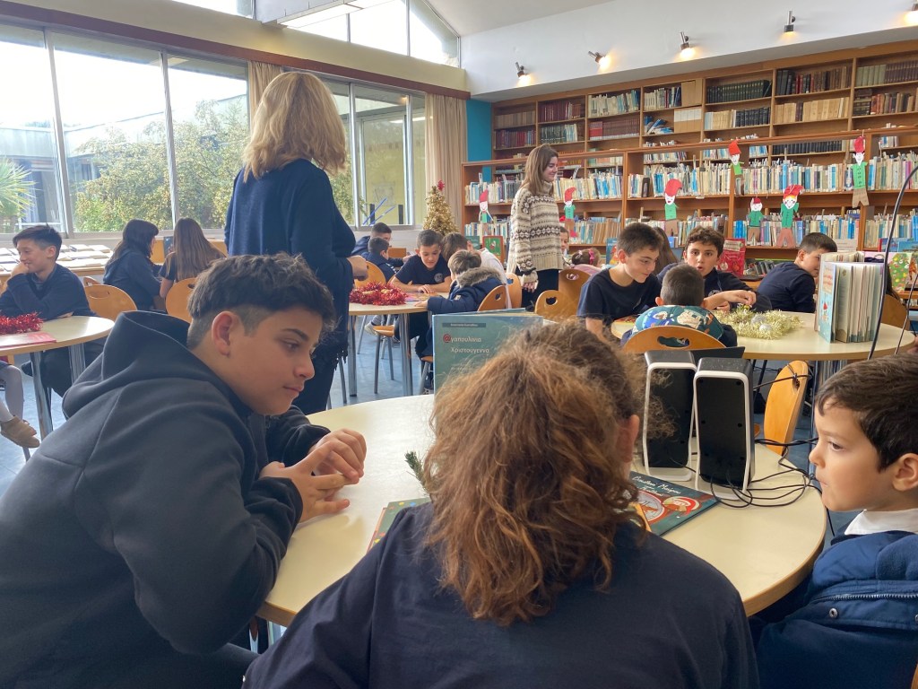 Για τους μαθητές του Νηπιαγωγείου είναι μια σημαντική ευκαιρία ανάπτυξης της φαντασίας και της δημιουργικότητας τους. Τα χριστουγεννιάτικα παραμύθια, γεμάτα φώτα, ξωτικά και ευχάριστες περιπέτειες είναι η τέλεια αφορμή για την Χριστουγεννιάτικη επίσκεψη στην Βιβλιοθήκη του Σχολείου μας. Η ζωντανή ανάγνωση- αφήγηση από τους μεγαλύτερους μαθητές στους μικρότερους, δίνει στο βιβλίο έναν δημιουργικό και ενεργό ρόλο, τα νήπια συνδέουν το βιβλίο με τη διασκέδαση και την ανθρώπινη επαφή! Δημιουργείται με αυτό τον τρόπο μια ευχάριστη ατμόσφαιρα συνεργασίας και αλληλεγγύης εντός της ενιαίας σχολικής κοινότητας των Αρσακείων–Τοσιτσείων Σχολείων Εκάλης ενισχύοντας το αίσθημα της κοινής ομάδας και της συνεργασίας ανάμεσα σε διαφορετικές βαθμίδες εκπαίδευσης.