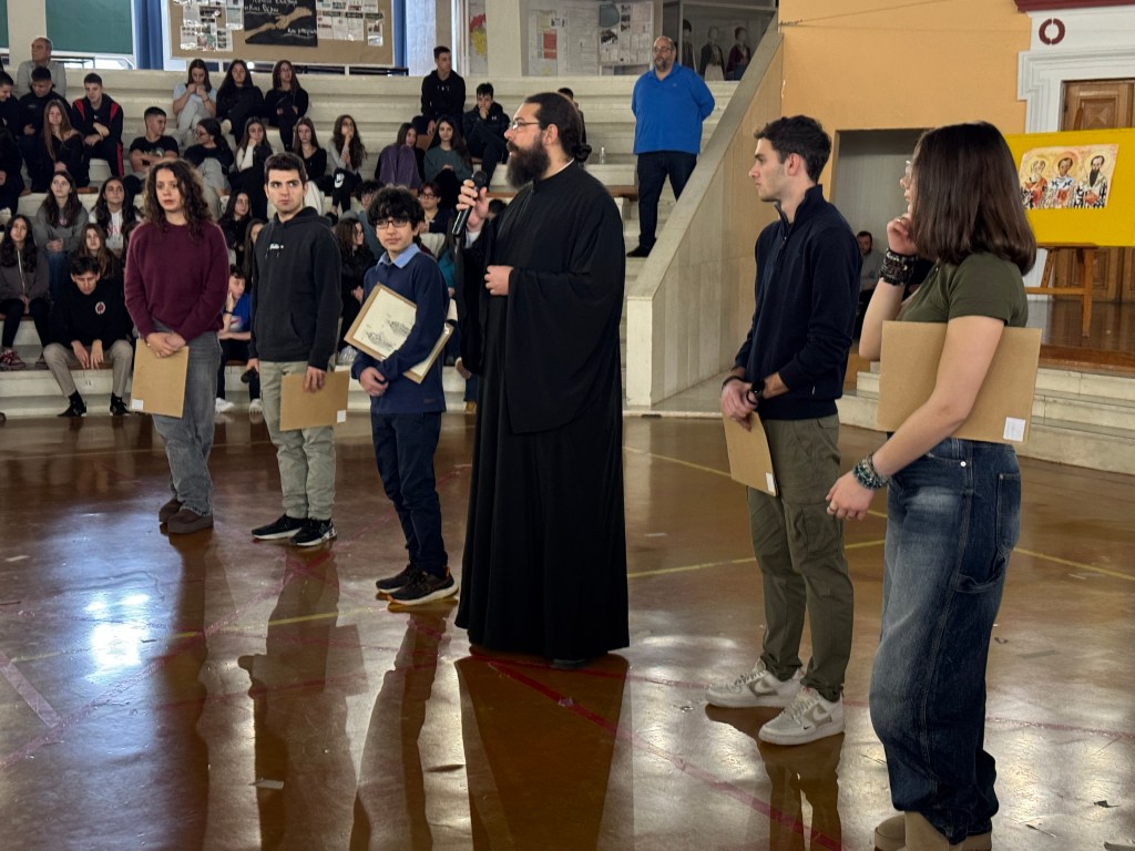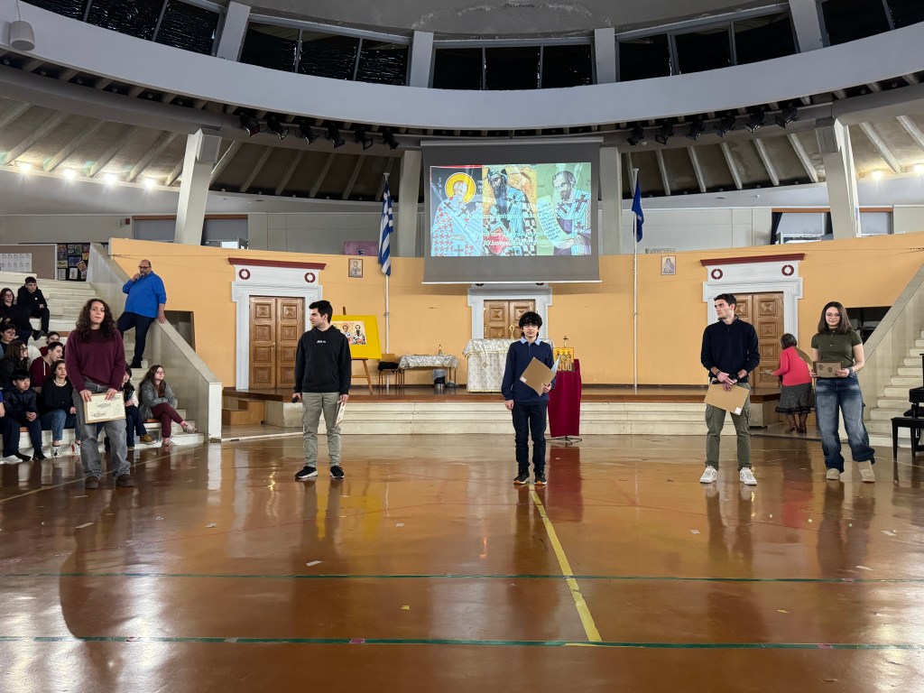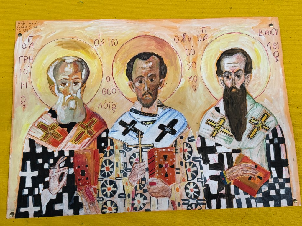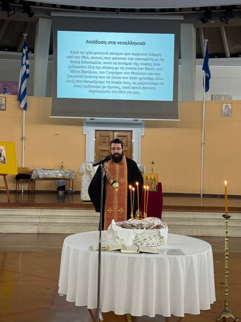 Οι μαθητές όλων των τάξεων του Α΄ Αρσακείου-Τοσιτσείου Γυμνασίου Εκάλης γιόρτασαν τη μνήμη των Τριών Ιεραρχών, προστατών των Γραμμάτων και της Παιδείας, την Πέμπτη 30 Ιανουαρίου 2025. Συγκεκριμένα, τη 2η διδακτική ώρα πραγματοποιήθηκε στον χώρο του Θεάτρου του Σχολείου Αρτοκλασία. Τα παιδιά συμμετείχαν στην ακολουθία που τελέστηκε από τον αιδεσιμολογιότατο Πρωτοπρεσβύτερο π. Ελισαίο Κυνούση και στη συνέχεια παρακολούθησαν ένα πολύ ενδιαφέρον και πρωτότυπο δρώμενο από μαθητές του Β’ Αρσακείου-Τοσιτσείου Λυκείου για τον βίο, το θαυμαστό έργο και την προσφορά των Τριών Ιεραρχών στην Παιδεία. Υπεύθυνη της εκδήλωσης ήταν η θεολόγος του Β’ Λυκείου κ. Ανέστη. Στο τέλος της εκδήλωσης ο π. Ελισαίος έκανε σύντομη αναφορά σε ένα σύγχρονο ιεράρχη, τον μακαριστό Αρχιεπίσκοπο Αλβανίας Αναστάσιο, ο οποίος με το θεολογικό, επιστημονικό, κοινωνικό και ιεραποστολικό έργο του μιμήθηκε τους Τρεις Ιεράρχες.