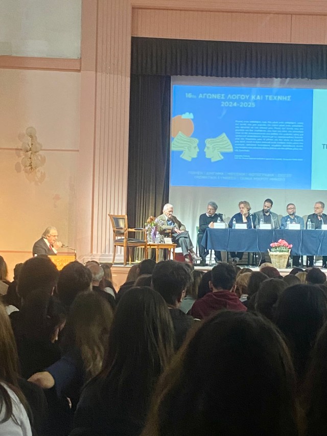 Την Τετάρτη 2 Απριλίου 2025, στο Θέατρο του Αρσακείου Ψυχικού, πραγματοποιήθηκε η τελετή βράβευσης των 16ων Αγώνων Λόγου και Τέχνης (Α.ΛΟ.ΤΕ.). Η εκδήλωση ξεκίνησε με μια ιδιαίτερα ενδιαφέρουσα συζήτηση μεταξύ του διακεκριμένου ποιητή κ. Τίτου Πατρίκιου και του έγκριτου δημοσιογράφου κ. Μάκη Προβατά. Ο κ. Πατρίκιος αναφέρθηκε στη σημασία της συμμετοχής των μαθητών στους Αγώνες Λόγου και Τέχνης, υπογραμμίζοντας τόσο την αξία της διάκρισης όσο και τη σπουδαιότητα της ανάγνωσης για τα παιδιά. Παράλληλα, τόνισε τη σημασία της δια ζώσης επικοινωνίας, εκφράζοντας την ανησυχία του για τη μοναξιά στην οποία οδηγούνται πολλοί νέοι εξαιτίας της υπερβολικής ενασχόλησής τους με τις οθόνες των τάμπλετ και τα μέσα κοινωνικής δικτύωσης. Κλείνοντας, απηύθυνε θερμή προτροπή προς τους μαθητές να καλλιεργούν την προσωπική τους επικοινωνία και να επιδιώκουν την ουσιαστική αλληλεπίδραση μεταξύ τους.