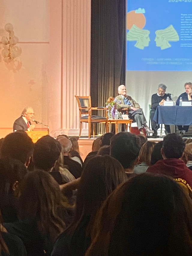Η εκδήλωση έκλεισε με την ομιλία του Προέδρου της Φιλεκπαιδευτικής Εταιρείας, Καθηγητή κ. Γεωργίου Μπαμπινιώτη, ο οποίος τόνισε τη σπουδαιότητα της καλλιτεχνικής δημιουργίας και την αξία των έργων που παρουσιάστηκαν. Ευχαρίστησε θερμά τόσο την οργανωτική όσο και την κριτική επιτροπή για τη συμβολή τους στη διεξαγωγή των Αγώνων Λόγου και Τέχνης, ενώ έκανε ιδιαίτερη μνεία στον ποιητή κ. Τίτο Πατρίκιο και τον ποιητή κ. Αντώνη Φωστιέρη, καθώς και στους αποφοίτους των Αρσακείων Σχολείων μέλη της κριτικής επιτροπής που έχουν πλέον καταξιωθεί στον τομέα τους. Τέλος, υπογράμμισε τη σημασία των καλλιτεχνικών μαθημάτων στο σχολείο, επισημαίνοντας πως η τέχνη δεν είναι μόνο ένας χώρος δημιουργίας, αλλά και ένα ουσιαστικό μέσο διαμόρφωσης μιας ολοκληρωμένης προσωπικότητας και ενός ενεργού πολίτη, ικανού να κατανοεί και να ερμηνεύει τον κόσμο με ευαισθησία και κριτική σκέψη.