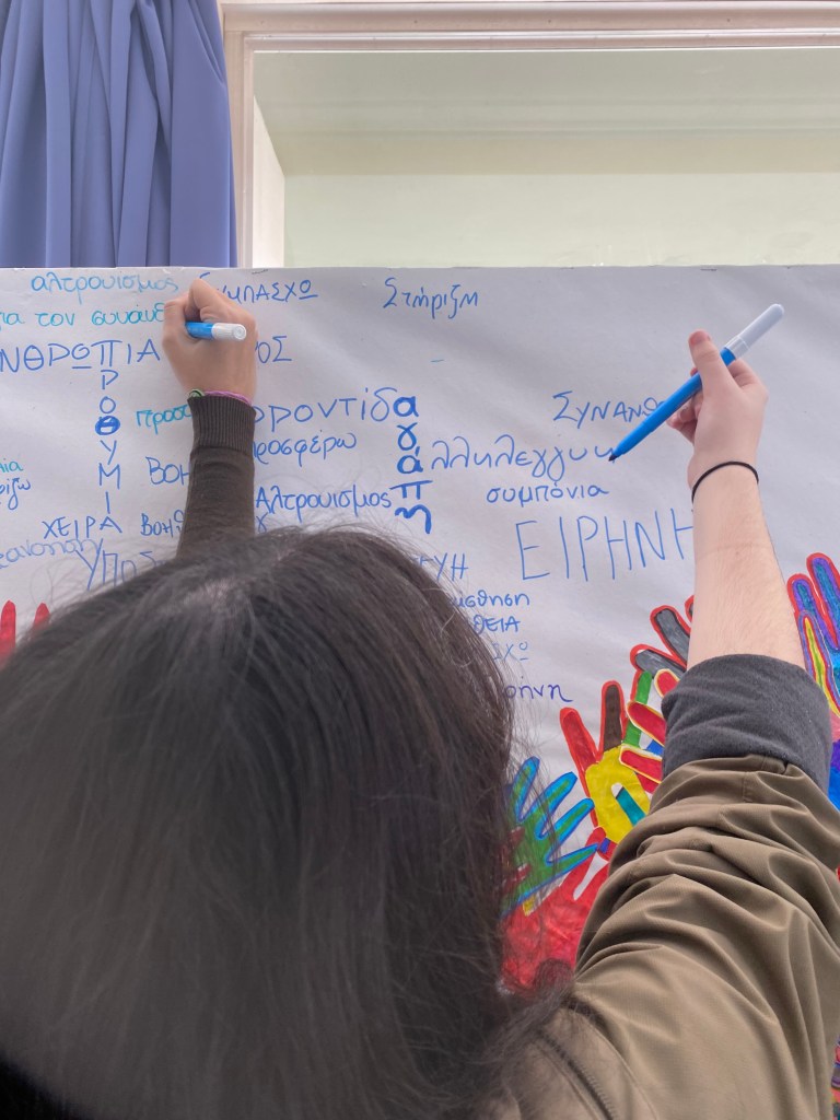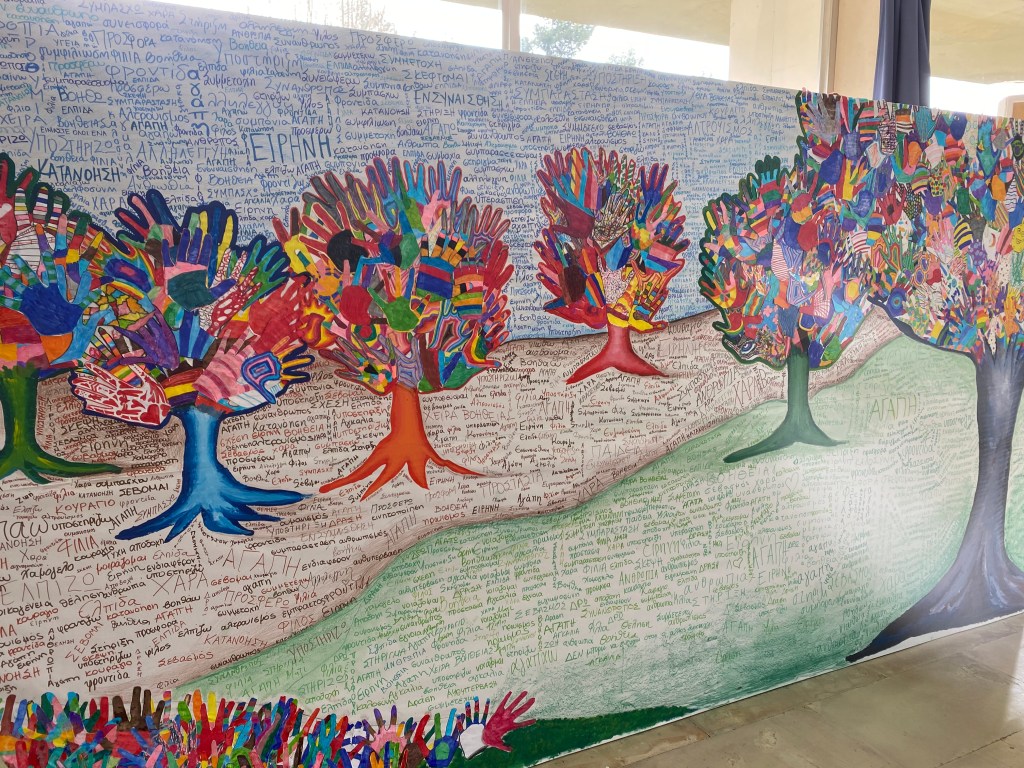 Το Σχολείο μας στηρίζει αυτήν την προσπάθεια και με ένα μεγάλο εικαστικό έργο φτιαγμένο από όλα τα παιδιά με την καθοδήγηση της καθηγήτριας Καλλιτεχνικών του Σχολείου κ. Κυριακής Πρεβενιού. Οι μαθητές του Α’ Αρσακείου – Τοσιτσείου Γυμνασίου και Λυκείου Εκάλης συμμετείχαν για να ολοκληρωθεί το εικαστικό έργο.